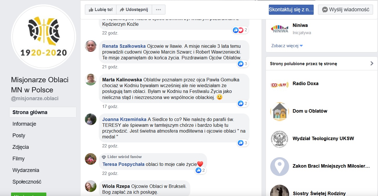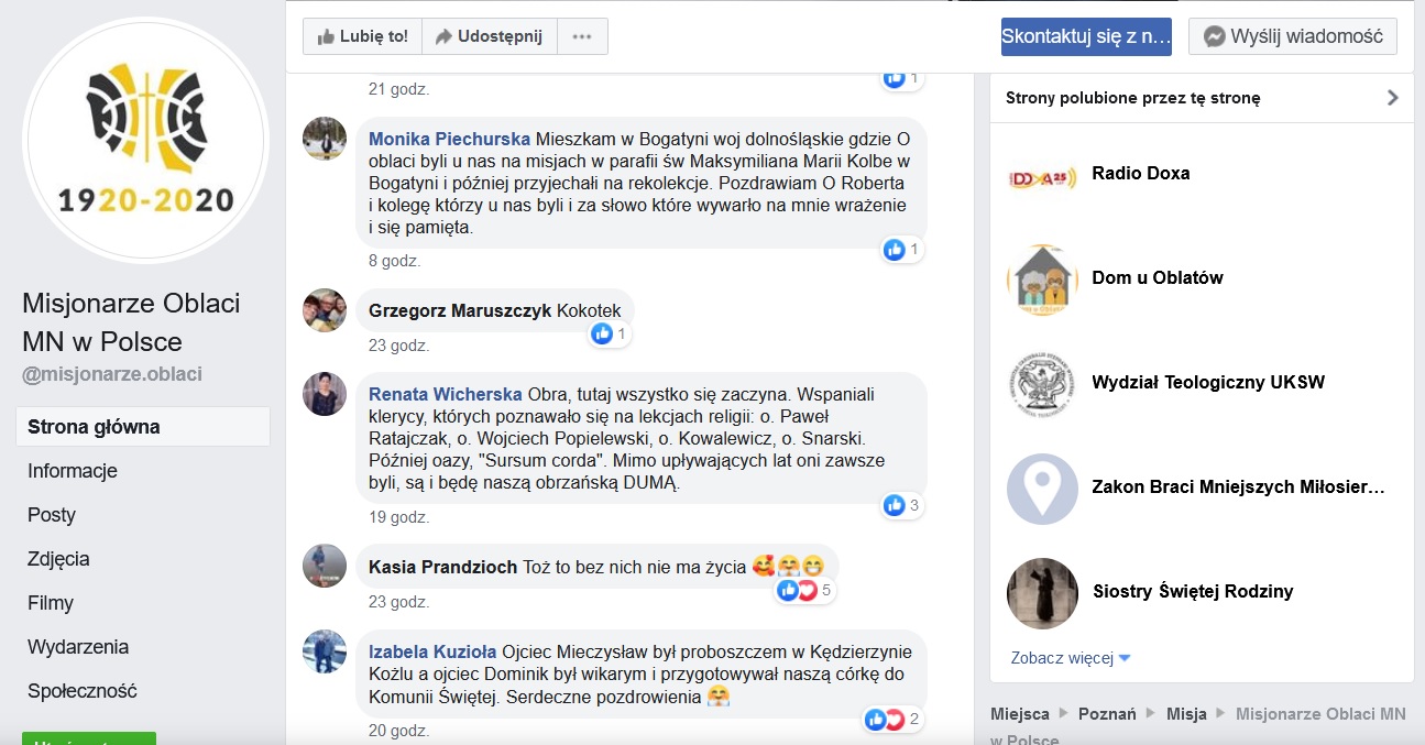 Wiadomość na Facebooku miała następującą treść: „Jest radość ? A Wy, jakie znacie wspólnoty oblackie? Może spotkaliście na swojej drodze radosnych misjonarzy (uwaga❗️jeśli widzicie jednego oblata, zazwyczaj zaraz pojawi się i drugi ?) A może wreszcie należycie do parafii, w której posługujemy❓ Jesteśmy wielce ciekawi Waszych odpowiedzi ?„.