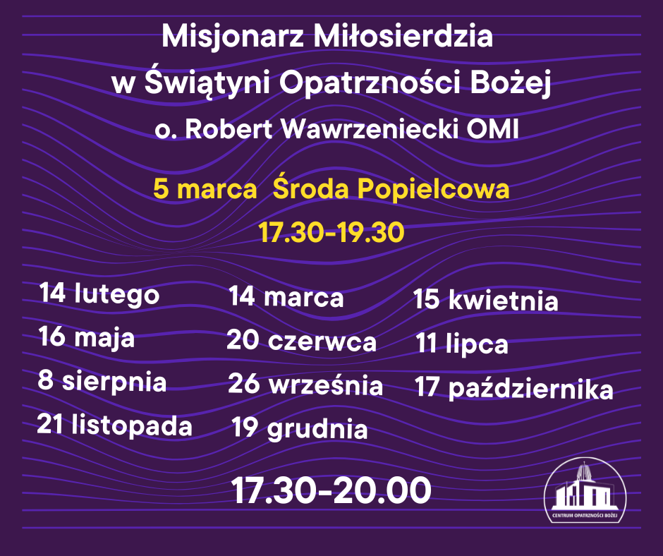 14.02.2025 roku jako Papieski Misjonarz Miłosierdzia rozpocząłem dyżury w Świątyni Opatrzności Bożej w Warszawie, gdzie w wyznaczone dni będzie pełnił dyżury w konfesjonale. Terminy zostały umieszczone na stronie internetowej (czytaj więcej>>>).