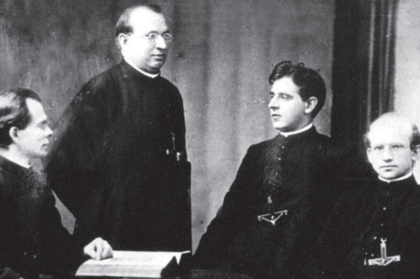 Zdjęcie archiwalne (nieretuszowane) – od lewej: o. Jan Wilhelm Kulawy, o. Paweł Czakaj, o. Jan Nawrat, o. Jan Pawołek